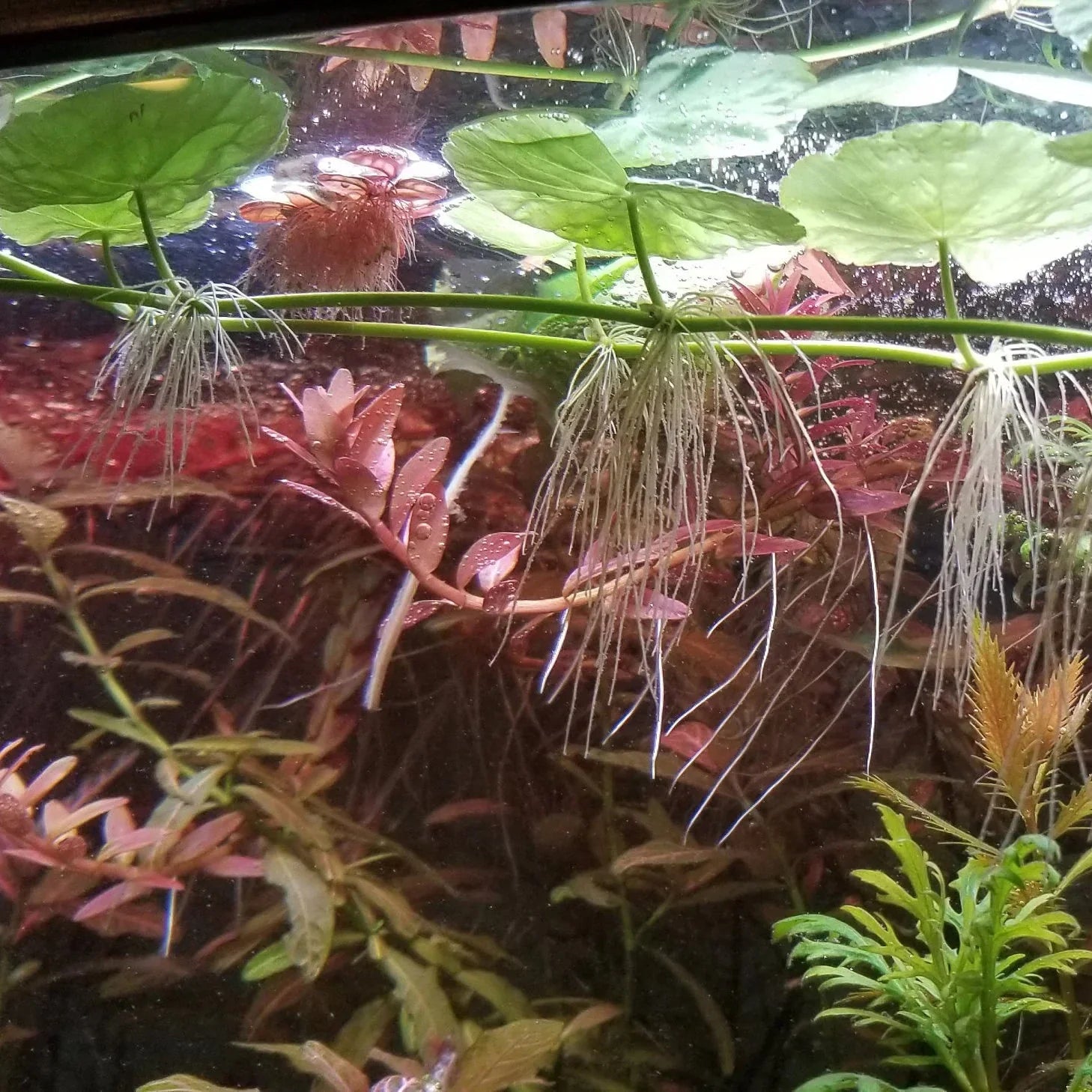 Brazilian Pennywort is a beautiful and distinctive aquatic plant recognized by its round, coin-shaped leaves that resemble small dollar coins. Its elegant trailing or climbing growth pattern makes it a stunning focal point in both aquariums and paludariums. This adaptable species can thrive fully submerged or emersed, bringing a touch of vibrant greenery and movement to any aquascape or mini pond setup.