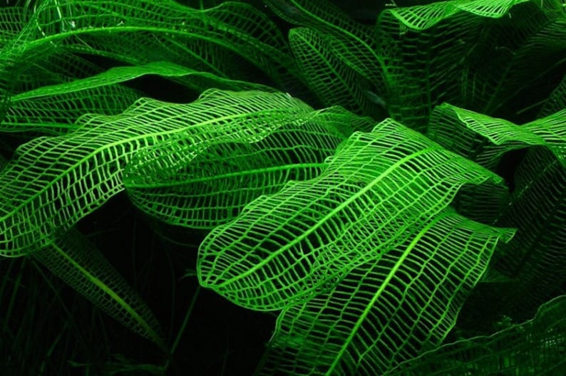 Known as the “holy grail” of freshwater aquarium plants, the Madagascar Lace Plant captivates with its long, delicate leaves featuring an intricate, net-like structure. Often compared to natural lace, this unique plant can grow over 20 inches tall, making it a dramatic centerpiece for any aquascape. Its skeletal foliage adds unmatched architectural beauty and texture, perfect for aquarists seeking a statement plant.